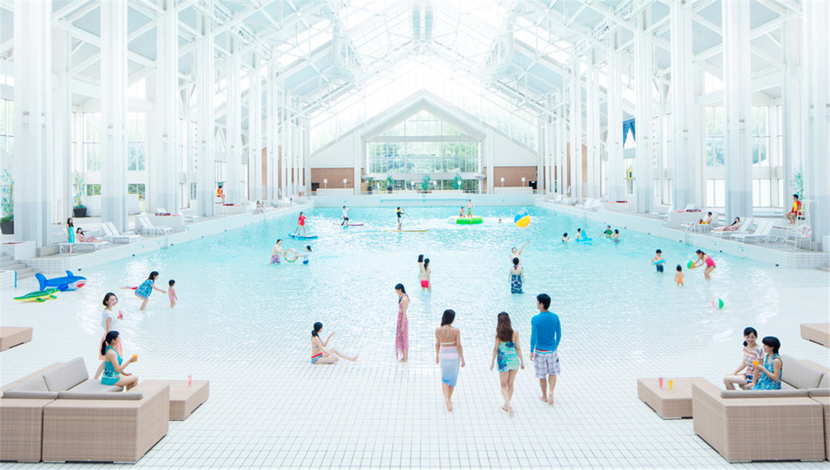 星野Tomamu度假村内还拥有日本最大的波浪泳池室内海滩——微笑海滩,玻璃幕墙的馆内常年保持着30度左右的气温,您可在此享受欢乐亲子时光。