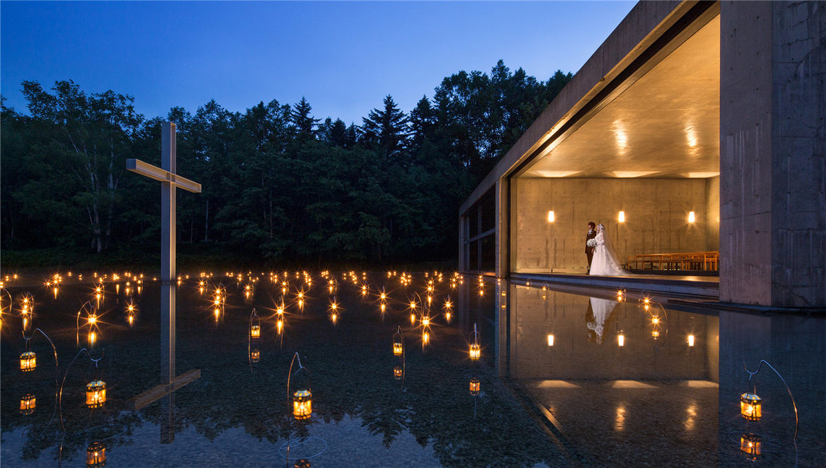 度假村内的水之教堂由世界知名建筑师安藤忠雄打造,可以在夜间特别开放给游客参观。此时的教堂并没有过多的人工光影,是一个可以静静感受自然星光的地方。