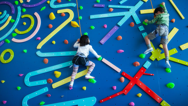 位于酒店11层的咖啡书吧,暨图书馆非常有特色,在里面可以脚踩白沙,而这两吨白沙是专门从澳大利亚搬铺在地上的,再搭配各种躺椅、吊床和帐篷,空间设计感由此变得让人耳目一新,营造出一种惬意的海滩风情,小朋友们可以在这里尽情玩耍。除此之外,更高高的攀石墙,因有安全带,在小孩子不害怕的前提下,4岁以上都可以免费进行体验,是最适合家庭亲子旅游的度假设施。