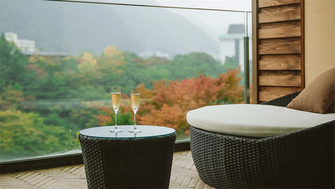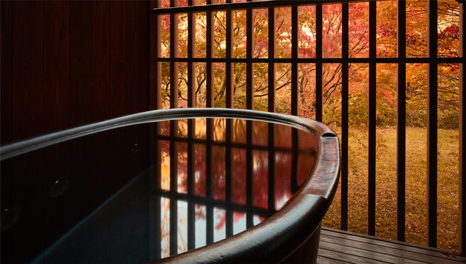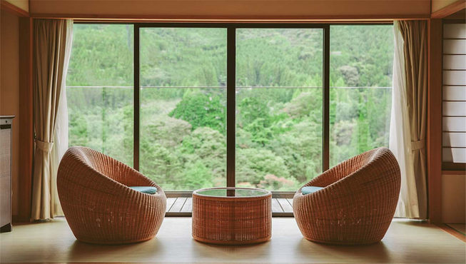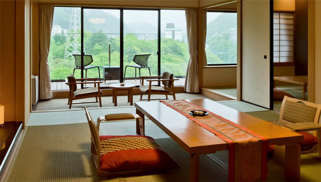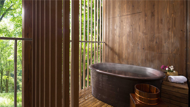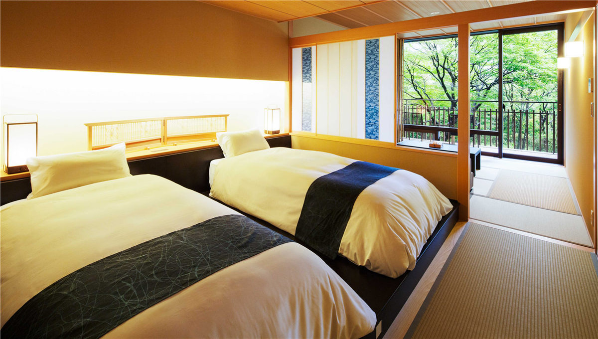 界 鬼怒川隶属日本代表性酒店集团星野,需搭乘沿斜坡铺设的缆车方可抵达这座位于山丘顶端的神秘旅馆。整体内饰多为益子烧、黑羽蓝染等丰富多样的栃木当地工艺品;48间日式客房不仅被盎然绿意环绕,选择附露天温泉房型的客人足不出户即可享受林间私汤。