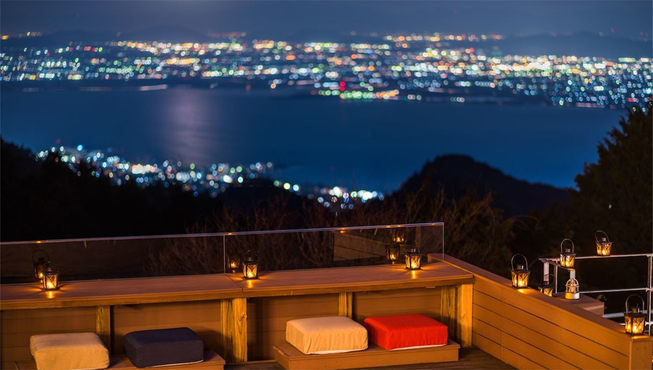 酒店位于远离京都市区的比叡山山腹,临近世界遗产延历寺以及日本第一大湖——琵琶湖。作为星野集团旗下主打美食的酒店,这里的料理长通过精选琵琶湖新鲜水产以及近江地方产应季食材,以融合东西方料理的美学理念,为食客奉上各类饕餮美味。