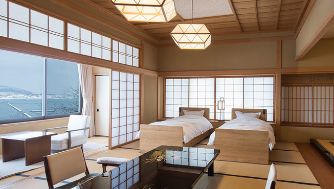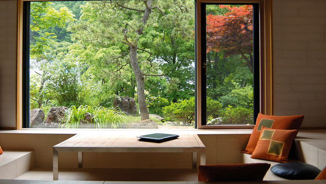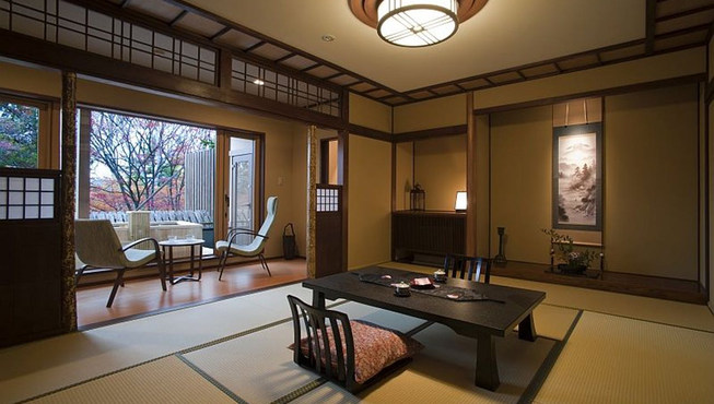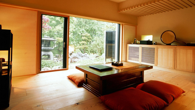 借助朝里川和周边的大山,以仓库为建筑原型,把各个“小仓库”用走廊连接到一起,建成的一个放松身心的设计型日式旅馆。每个房间都配置了古董家具,配合周围的怀旧氛围,内饰全部采用的是对人体无害的材料。
