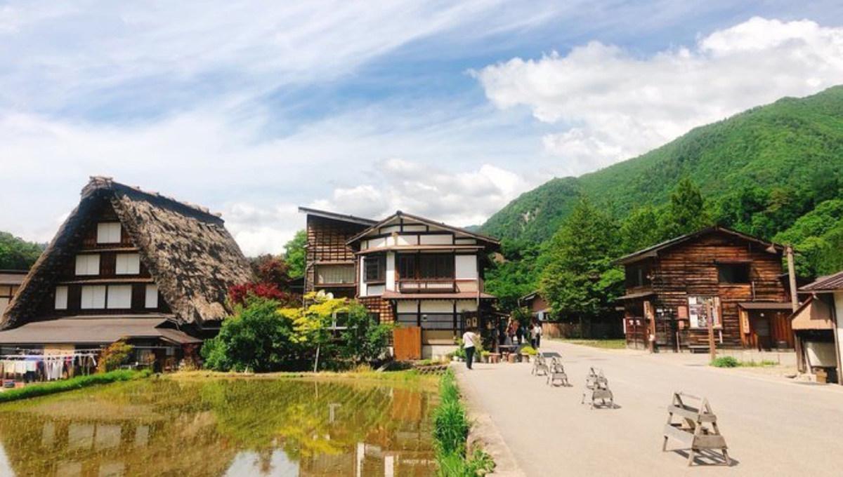 中部的岐阜县内,森林占了总面积的五分之四以上。飞弹山脉耸立着海拔都在 3000 米左右的高峰,属于中部山岳国立公园,保存着大片山毛榉森林和高山植物的两白山地属于白山国立公园。白山山麓的白川乡,有连片的“合掌造”(茅草做的人字形屋顶)式传统民宅,已被指定为世界文化遗产。