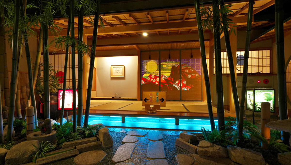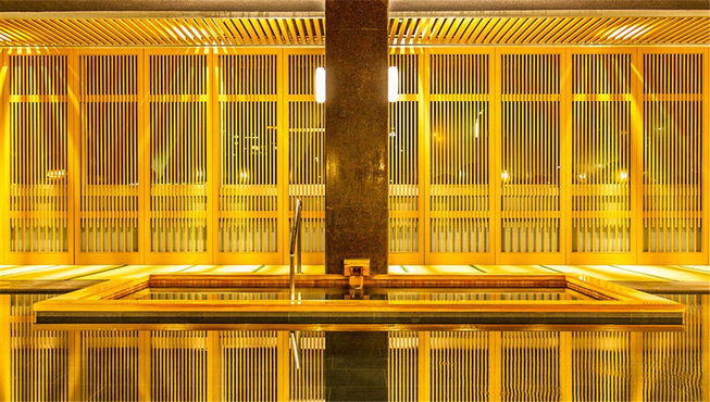 1950年开业,融合榻榻米文化与温泉文化,汤池区域由百帖以上榻榻米铺设而成,而称其为“叠风吕”。走入大浴池时脚上的触感柔软舒适又温暖,在热气蒸腾的汤池畔、延伸到泡汤池内都是一脉暖烘烘的温度,真是非常奢侈的享受。