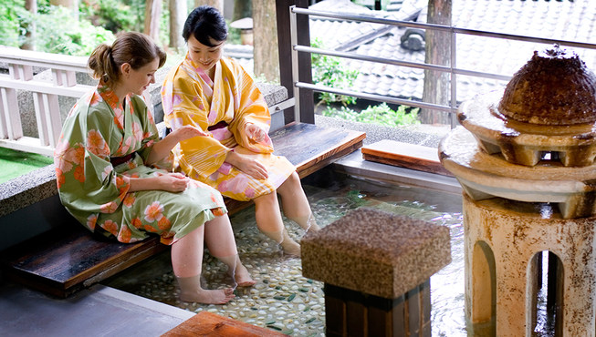 下吕温泉在江户时代就被列入了日本三大名泉,对风湿性疾病和运动功能障碍有疗效。泉质为碱性单纯温泉,无色透明,带有些微的香气,水质相当温和。浸泡在温和的热水里,可使肌肤如丝般滑嫩。