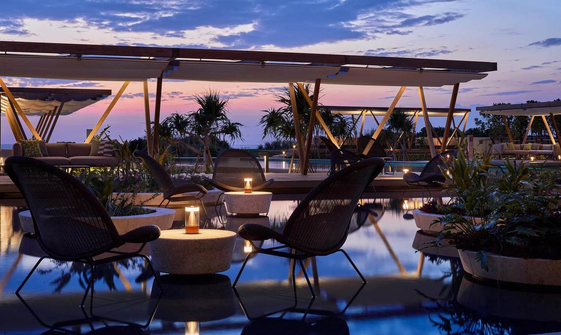 游泳池区域就像是一个充满个性趣味的游乐场,而泳池就像在庭院中分布的大大小小的水盘。泳池边有可供小憩的休息室,还有水上舞台和可供孩子们尽情玩耍的区域。泳池深处靠近沙滩,就好似能够直接进入到那一望无际的大海般,当夕阳西下时,这里又将变成欣赏日落的最佳席位。