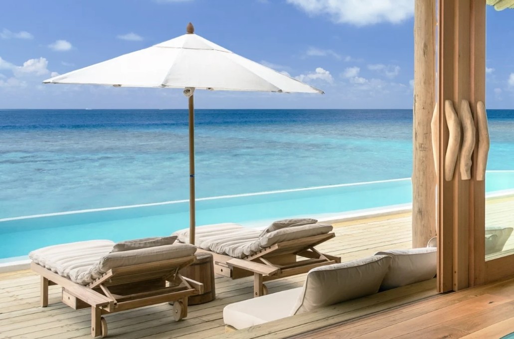 联合国教科文组织把Baa环礁列为世界自然遗产,附近海域物种丰富,生态环保,是马尔代夫顶级的浮潜/潜水胜地。除了晶莹剔透的海水,白色沙滩和热带气候外,岛上的丰富植物给你提供了独特的自然体验。55幢别墅零落地分布在沙滩边,隐藏在郁郁葱葱的树林里,环境相当私密。白色的沙滩轻轻的被蔚蓝的海水包围着,索尼娃富士看上去就像标志性的鲁滨逊漂流记的场景,自然呈现低调的、智慧的奢华。索尼娃富士低调奢华的感觉体现在它的客人的休闲着装和自然的建筑设计理念,却保留着豪华和充满幻想的本质。每幢别墅离白色的沙滩只有几步的距离。部分别墅有私人游泳池,所有的卫浴间延伸至花园,亲近自然。在小岛的中心有2个大的菜园,让酒店客人能享用到最新鲜的水果,沙拉,香料和蘑菇。