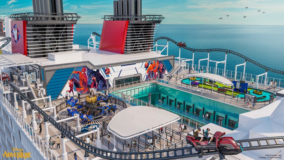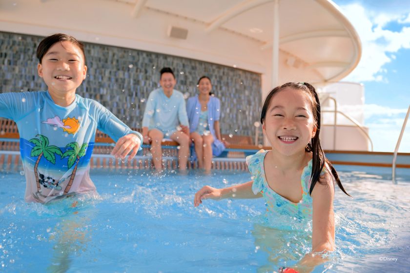 踏上迪士尼探险号的上层甲板,来到Toy Story Place。这里设有家庭泳池、多个按摩池以及一系列水上游乐设施,例如Flying Saucer Splash Zone、专为小朋友们打造的Toy Story Splash Pad,以及Woody and Jessie’s Wild Slides。日光甲板和观景台上设有充裕的座椅,另有两个超大屏幕,全天候放映迪士尼电影及知识问答等精彩内容,以供宾客放松身心。