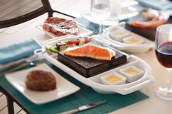 烧烤餐厅白天提供露天的风味午餐,晚上提供银海邮轮标志性的熔岩石烹饪料理。餐厅先进的烧烤遮蔽装置,能确保烤架适宜的温度与风力,为您呈现出口感最佳的烧烤料理,畅享熔岩石烹饪的无穷乐趣。