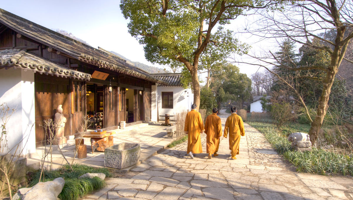 到杭州的那天阴雨绵绵,一切的绿都是那样湿漉漉的,安缦就隐匿在这一大片诗情画意的绿色当中,在梅灵北路上有块非常不起眼的小牌子,往往会被路人错过,如此的低调,这里转进去谁能想就是一片世外桃源。喧闹与静谧,俗世与梦境,尘缘与隐居,仿佛就这么一线之隔。有时对与错,恩与债,爱与恨,生与死,毁灭与永恒也都是那无形的一线之隔。