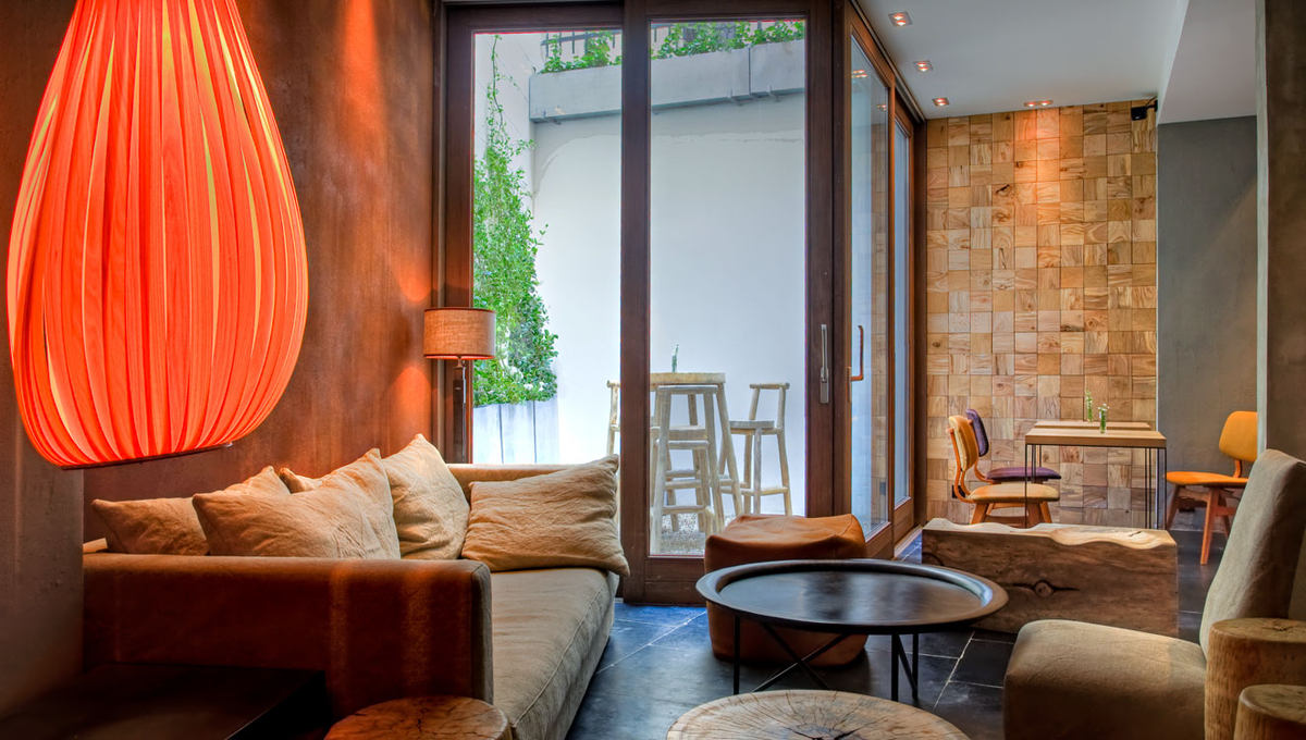 住在这里,您可能会产生一种错觉,这里是那繁华、喧嚣的大巴黎吗?酒店的设计理念是将有机,生态,自然跟现代相融合,颇有中国道家,“大隐于市”的思想呈现。酒店座落在巴黎中心区域,一个条较为安静的街道上,店内所有的装饰用品都采用纯天然的材料,及纯手工制品,为您提供清静舒适的居住环境。