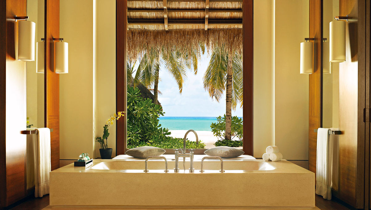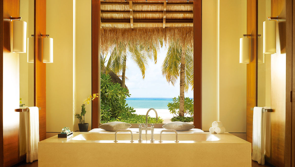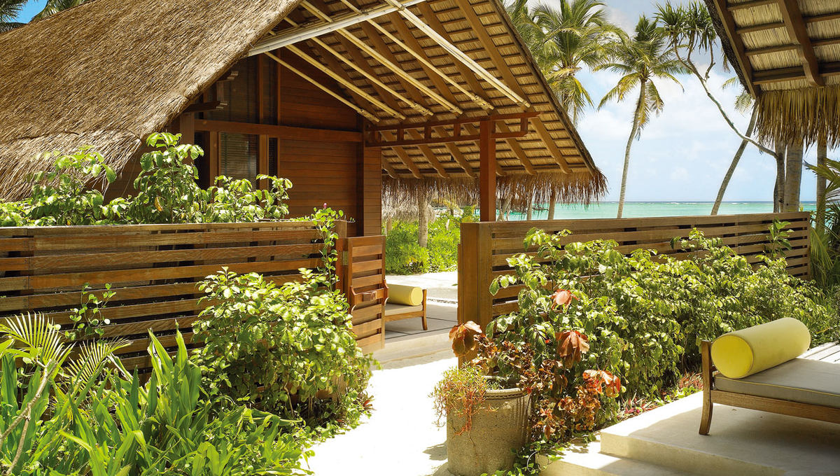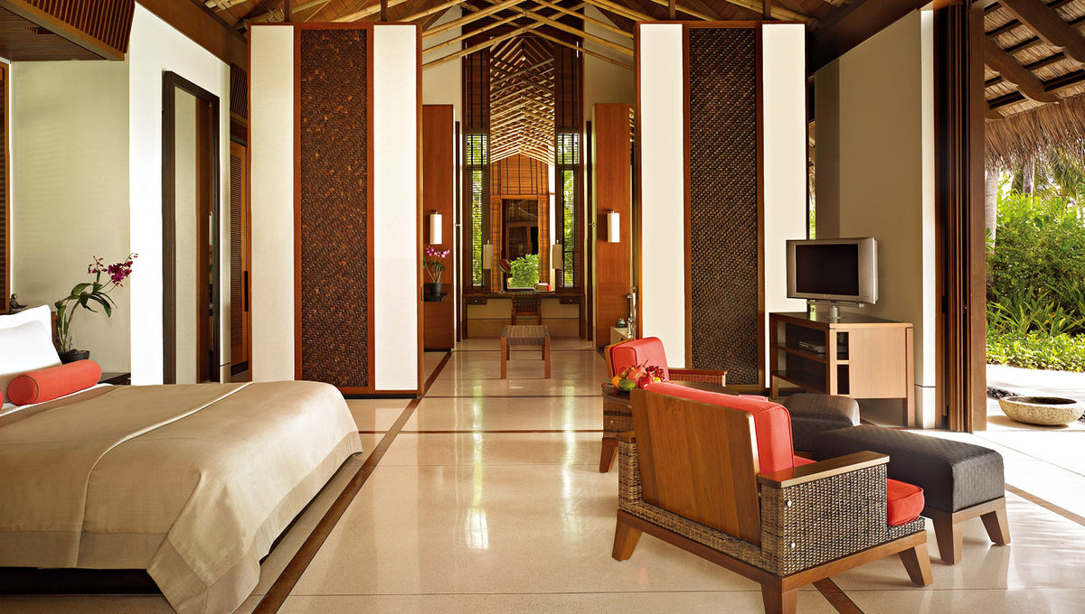 从别墅到海滩不过40步距离,别墅有着教堂一样的通风高屋顶,大床正对着大海,旁边摆放着2张座椅和一套书桌座椅。在浴室里,有可以随意挪动的花洒,独立浴缸,以及两个浮奢的水槽。走在房外,宽敞的阳台上摆有桌椅,日光浴床边便是户外淋浴池。 房间特色设施:互动的卫星频道,立体声环绕系统,高速宽带上网,30厘米Posturepedic海豹床垫和300 thread-count缎,100%的埃及棉床单,丝绸与缎面的床垫,棉质床上用品,甲板阳光躺椅,双浴室及更衣室,超大水磨石浴缸,毛绒睡衣或棉质和服