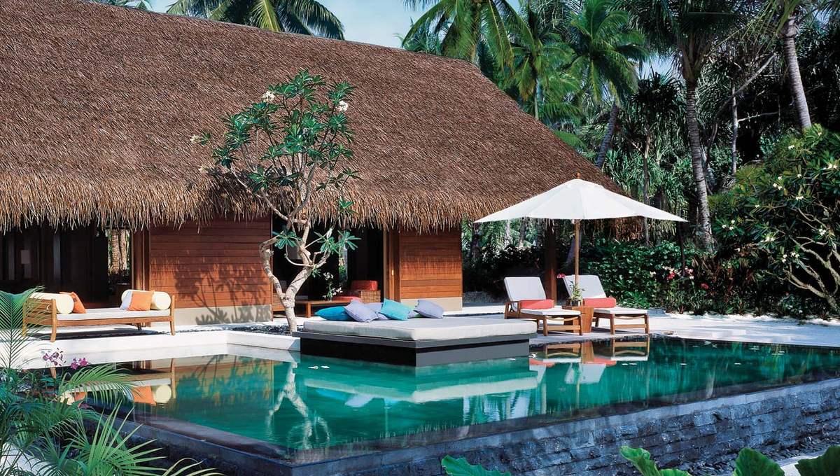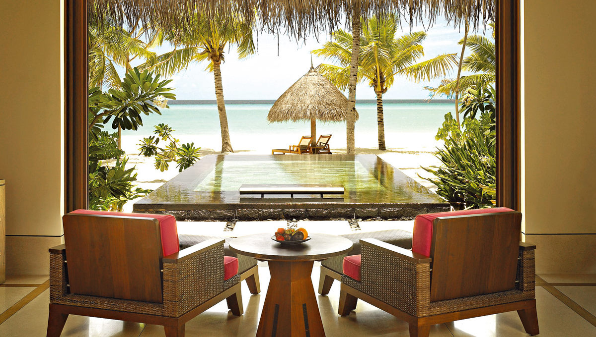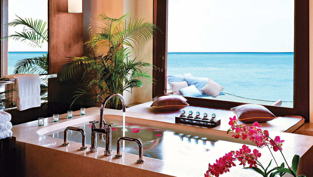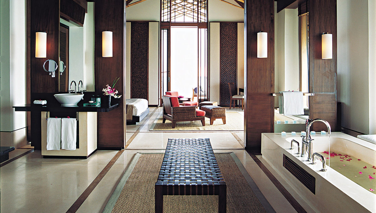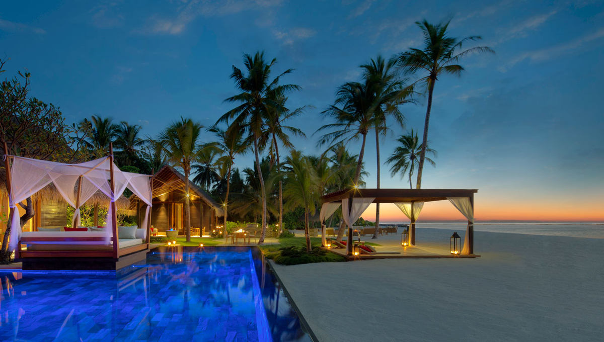 从别墅到海滩不过40步距离,别墅有着教堂一样的通风高屋顶,大床正对着大海,旁边摆放着2张座椅和一套书桌座椅。在浴室里,有可以随意挪动的花洒,独立浴缸,以及两个浮奢的水槽。走在房外,宽敞的阳台上摆有桌椅,日光浴床边便是户外淋浴池。 房间特色设施:互动的卫星频道,立体声环绕系统,高速宽带上网,30厘米Posturepedic海豹床垫和300 thread-count缎,100%的埃及棉床单,丝绸与缎面的床垫,棉质床上用品,甲板阳光躺椅,双浴室及更衣室,超大水磨石浴缸,毛绒睡衣或棉质和服