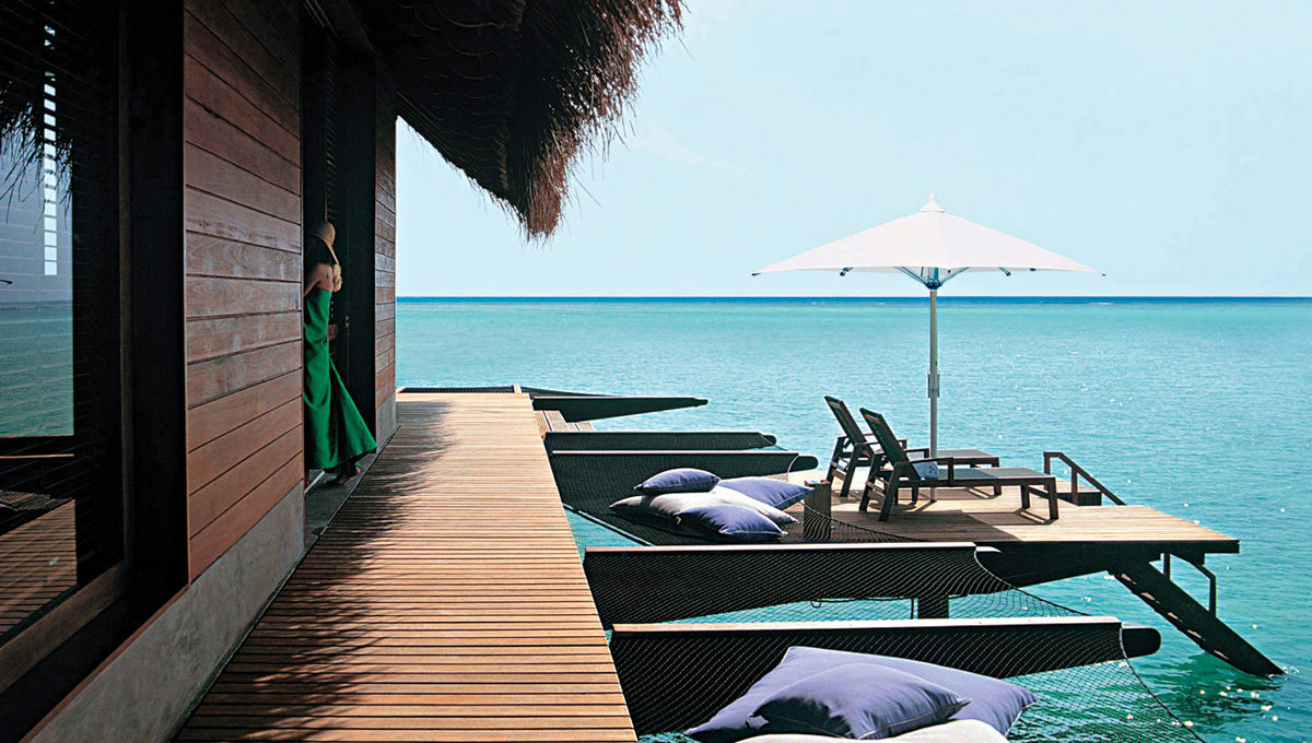 这些别墅与海滩别墅的面积相等,在甲板外缘设有悬挂于水上的网格吊床,可供您享受白天的日光浴或尽情欣赏夜晚的璀璨星空。