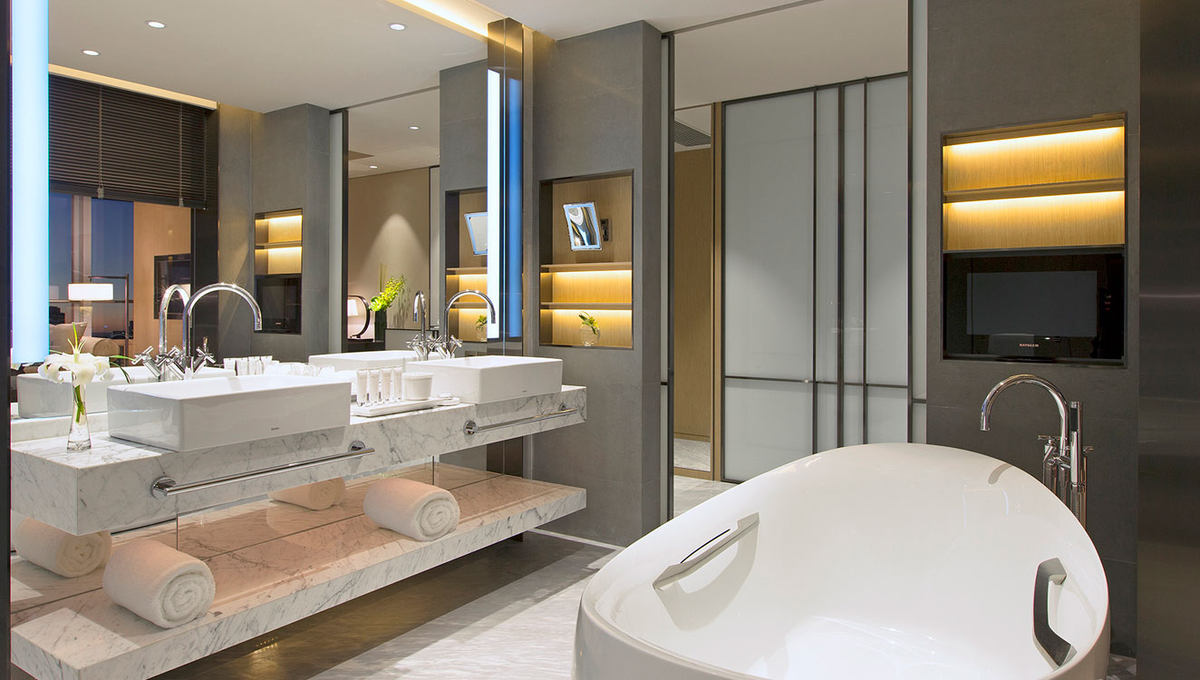 位于酒店7层至25层的N3房型, 宽敞舒适、魅力时尚,其大面积落地玻璃窗将迷人美景尽收室内。房间内配以一系列城市时尚风格的艺术品,给客人营造了现代时尚风格的舒适感觉。设备齐全、精美舒适的浴室由大理石装饰而成,配有豪华浸浴浴缸和独立淋浴,令您充分放松身心。客房内所配备的的洗浴用品选用奢华典雅的意大利品牌特别定制,配有舒适柔软的床单和毛巾用品,让您尊享宽敞舒适与别致氛围。客房内配备有IPad点单服务及免费高速无线上网功能。