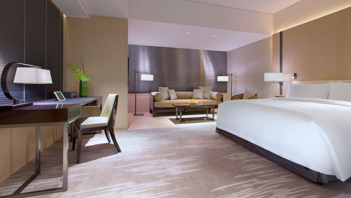时尚优雅的N1房型,以大地色为内部设计的主色调,温暖细腻的光线,配以一系列城市时尚风格的艺术品;整个房间给客人营造了现代时尚风格的舒适感觉。全自动的化的窗帘,深色系的木质桌椅以及用皮革包盖住的书桌,无不呈现出一种奢华感。客房内所配备的的洗浴用品选用奢华典雅的意大利品牌特别定制,配有舒适柔软的床单和毛巾用品,让客人入住时增添一份惬意。客房内配备有IPad点单服务及免费高速无线上网功能。