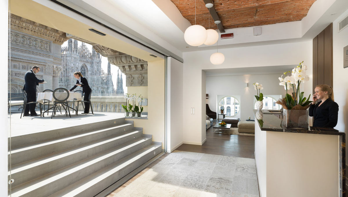 酒店的十四间客房和套房完美结合了经典意大利风情和现代奢华格调,每间都经由意大利知名设计师装饰布置,并且设有舒适的豪华大床和高端的电子产品。在任何一间套房的私人阳台上,您都可以轻而易举地饱览大教堂的美景盛况。所有的房间和套房都配备了双层玻璃窗,为住在这里的客人们营造出一个闹中取静的宁静放松之所。
