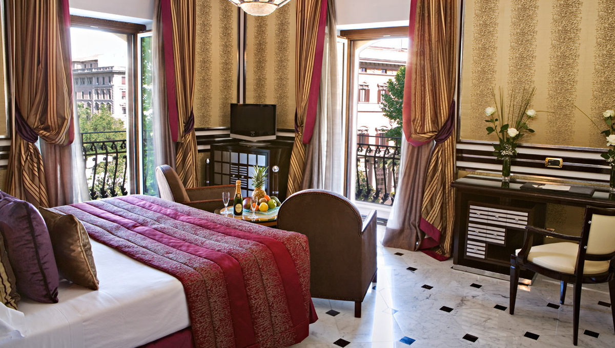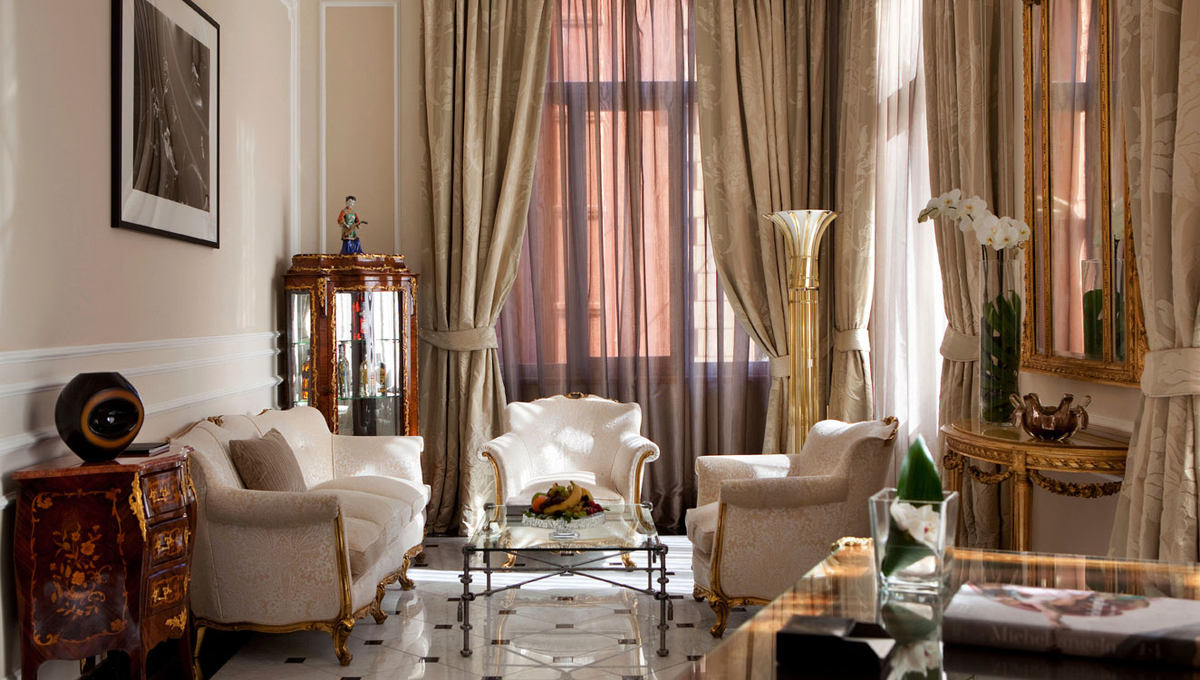 酒店典雅豪华的房间配以传统的Deco艺术风格,时尚的家具、穆拉诺玻璃吊灯和意大利式大理石浴室相得益彰。挑高的天花板和珍贵丝绸挂毯也是房间的特色。
