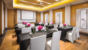 整个酒店被群山叠抱,村居山前。所以每个空间都有视野开阔的窗景,将自然情趣作为室内空间的视觉延伸,把山水灵气充分带入室内外的氛围中。整体设计的概念为,朴而不素,华而不溢,雅而不俗,完整传达徽派建筑特有的清雅美学。设计手法上,运用了仿木构的坡屋顶来表现徽派建筑中木构的高脊飞檐,并运用白色大理石雕刻来表现徽派青石砖雕的精巧艺术,更显精致简约。
