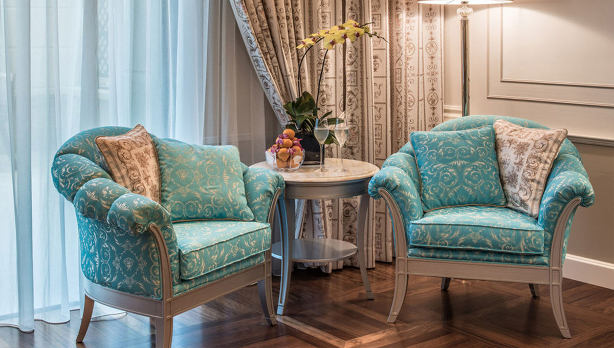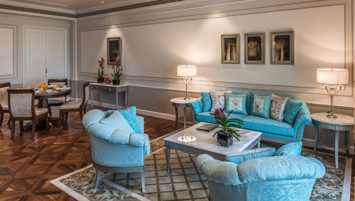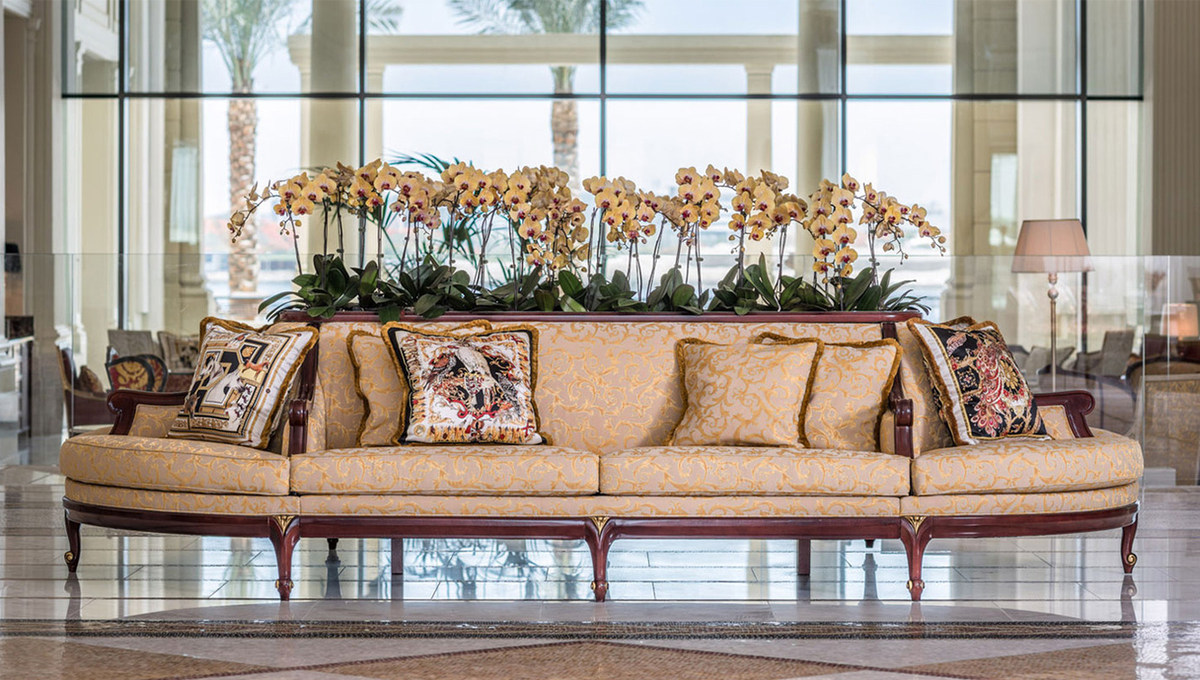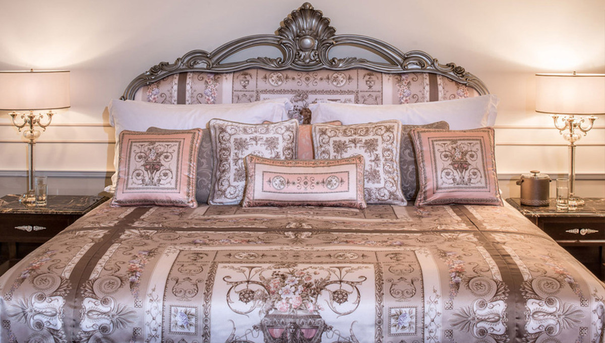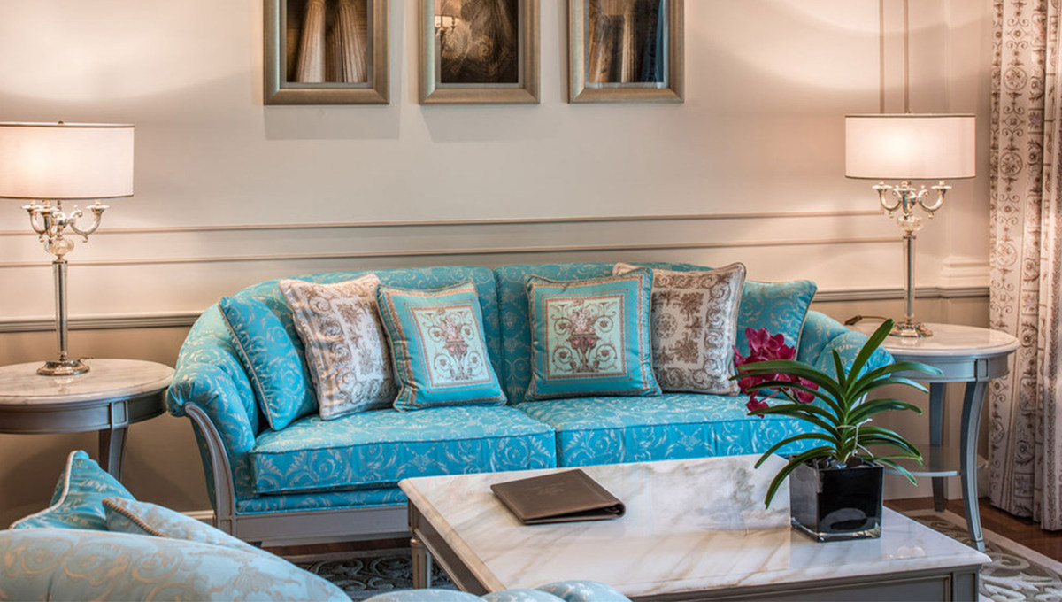 | 墙身均以不折不扣的手绘意大利图案粉饰,每一件家具和织物都由范思哲为酒店量身打造 |