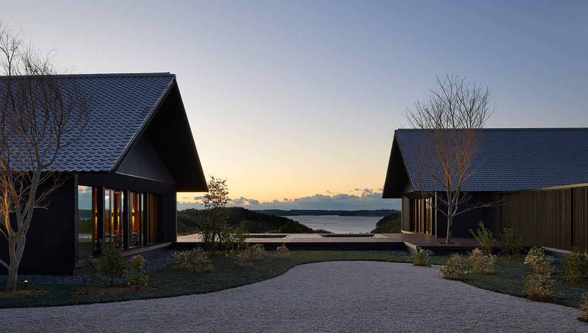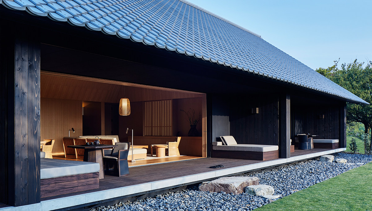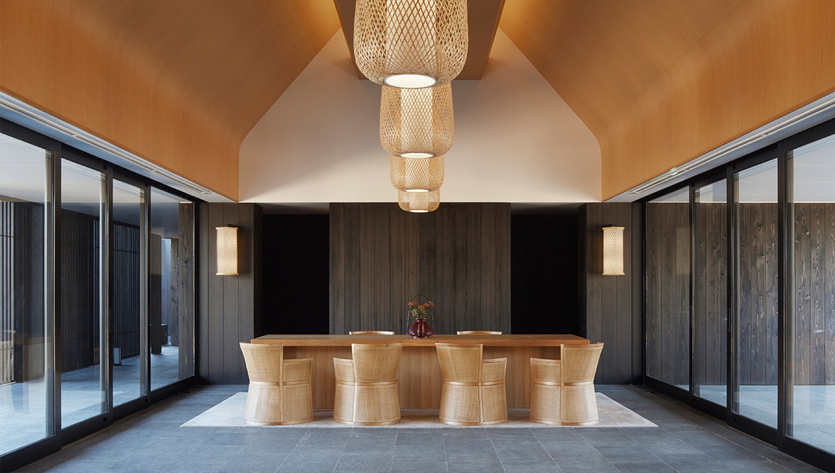 度假村由东京安缦的设计团队Kerry Hill Architects精心打造,以现代的方式演绎了日本民家建筑,包括传统的低矮瓦屋面和染成深色的日式杉木外墙,参考了当地温泉旅店朴素而深受自然影响的设计,宛若日本传统的温泉度假地。度假村曲径通幽的车道通向坐落于山坡上的迎宾馆,四周种植着枫树和樱花树,这一处景致也奠定了整个度假村的基调,富有日本当地特色的树木烘托出醇厚的日式风情,绿荫环绕,宛如画卷。