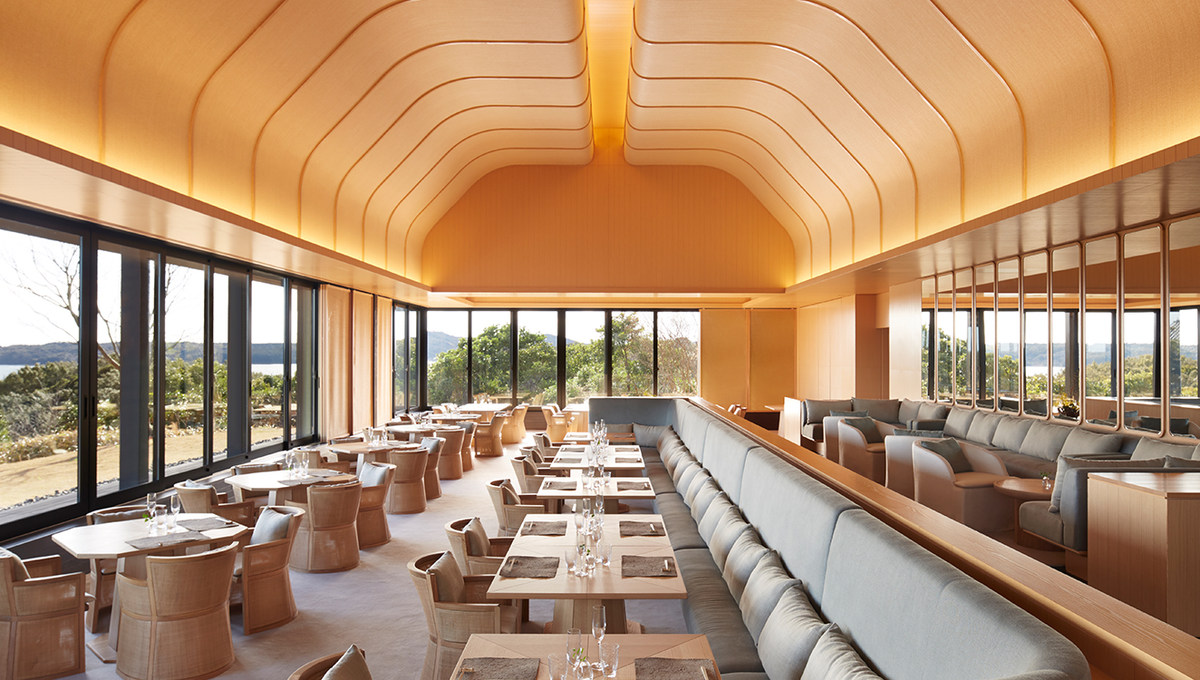 餐厅和酒吧之间有着玄武岩建造的下沉式露台,是享用餐前酒的理想地点,玻璃壁炉既现代又传统,附近的33米淡水无边泳池提供了素有“珍珠湾”之称的英虞湾(Ago Bay)的全景景观,客人们可以远眺宁静的海面上星星点点的采珠船。餐厅的拱形方格天花板给人一种空旷的感觉,汲取了纯正的日式“居酒屋(izakaya)”风格随性而乐于分享的特点。以日本的“当日主厨定制菜(omakase)”概念为基础,即不设菜单,由主厨为客人精心选择菜式。12位大厨组成的团队负责根据每天的新鲜食材供应创作菜单。除了来自世界各地的红酒以外,精选的清酒、烧酒以及顶级陈年日本威士忌也令安缦伊沐的美食体验锦上添花。