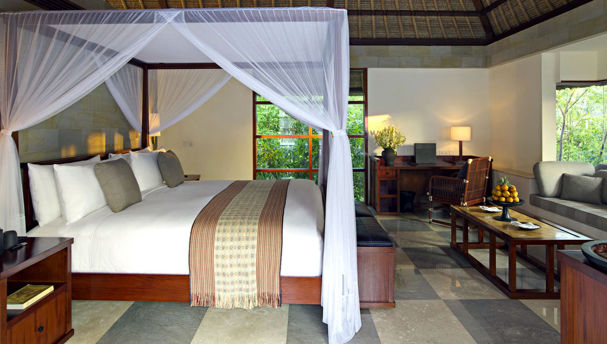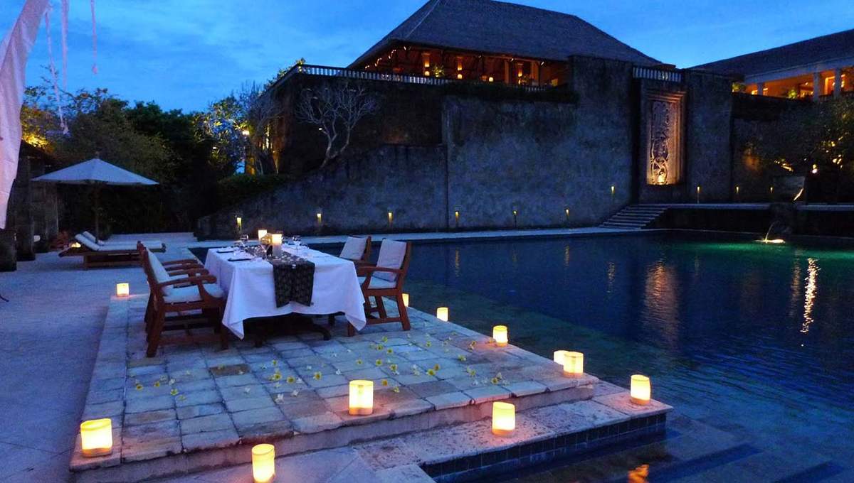 Amanusa在印尼当地语中意为“宁静的小岛”,正如其名,整个度假村矗立在Nusa Dua海滩的一处绿色山丘上,可以俯瞰这个区域著名的高尔夫球场。除了每个巴厘岛风格的茅草屋顶外,走廊的柱子上还雕有罗摩衍那的故事和人物,充分体现出巴厘岛信仰印度教的渊源。亚洲最顶级的高尔夫球场及壮丽园林、海滩更使此地成为举行婚礼的终极梦想之地。