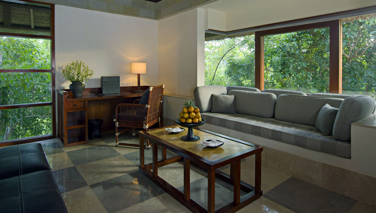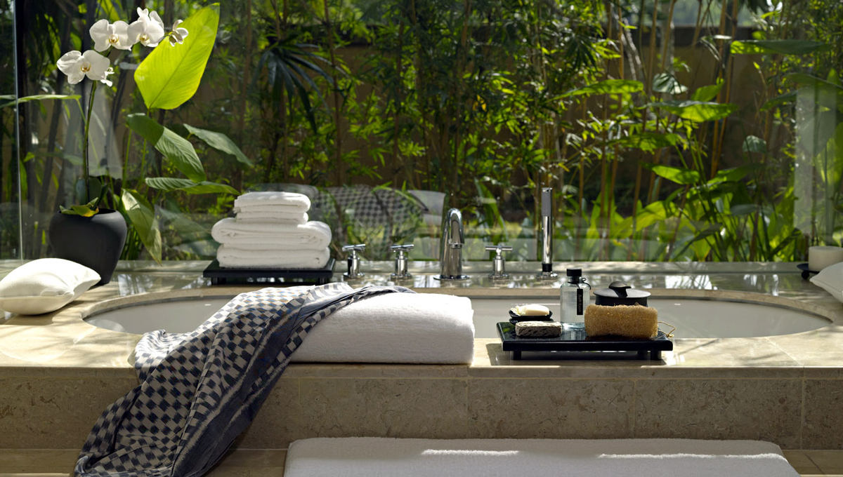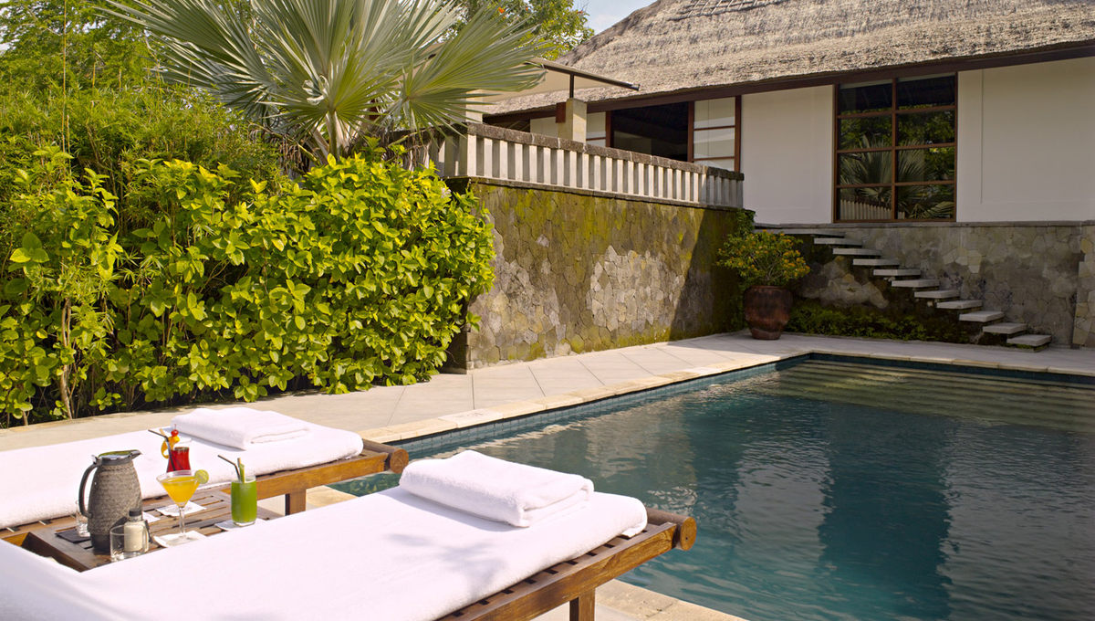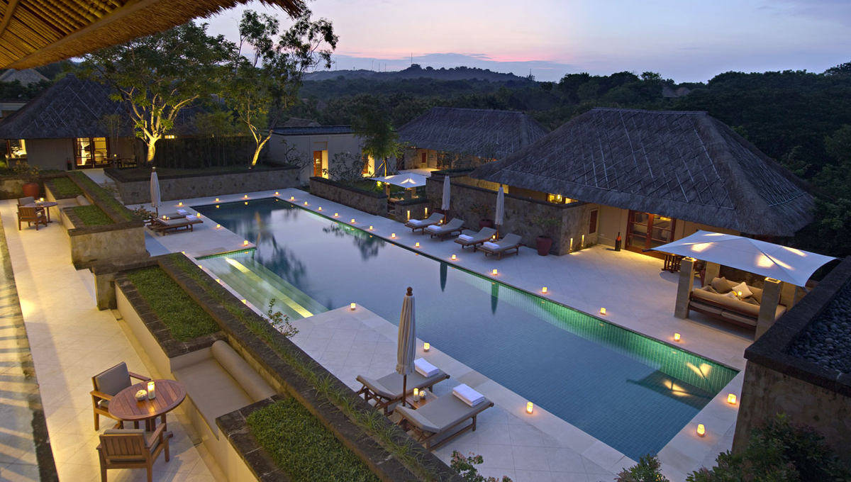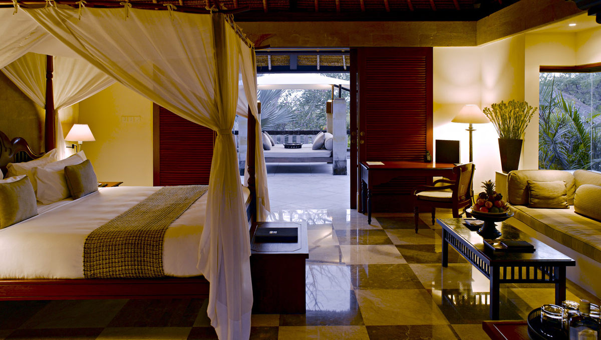 安缦努沙杜瓦度假村由名设计师凯瑞希斯执笔,其作品涵盖了涵碧楼、不丹安缦柯拉及兰卡威达塔,深谙如何使建筑在净素古朴间展现明快时髦的气息。酒店为印尼前总统苏哈托的小儿子托米所有,一直深得各国政要所钟爱,一栋栋私密感极强的独立别墅顶着巴厘传统的茅草顶散落于主楼两侧的小丘之上。客房完全由精巧庭院包围,凉亭、起居庭院、卧室甚至私人泳池都与自然情境无间交融。镜泊般的超大泳池置于落英缤纷的怡人花园中。