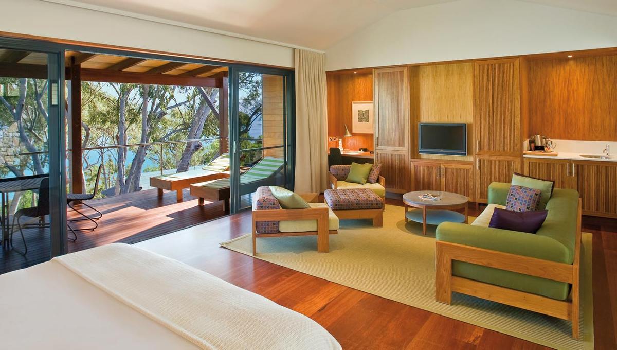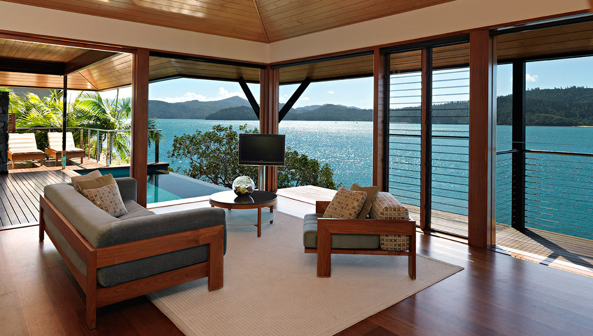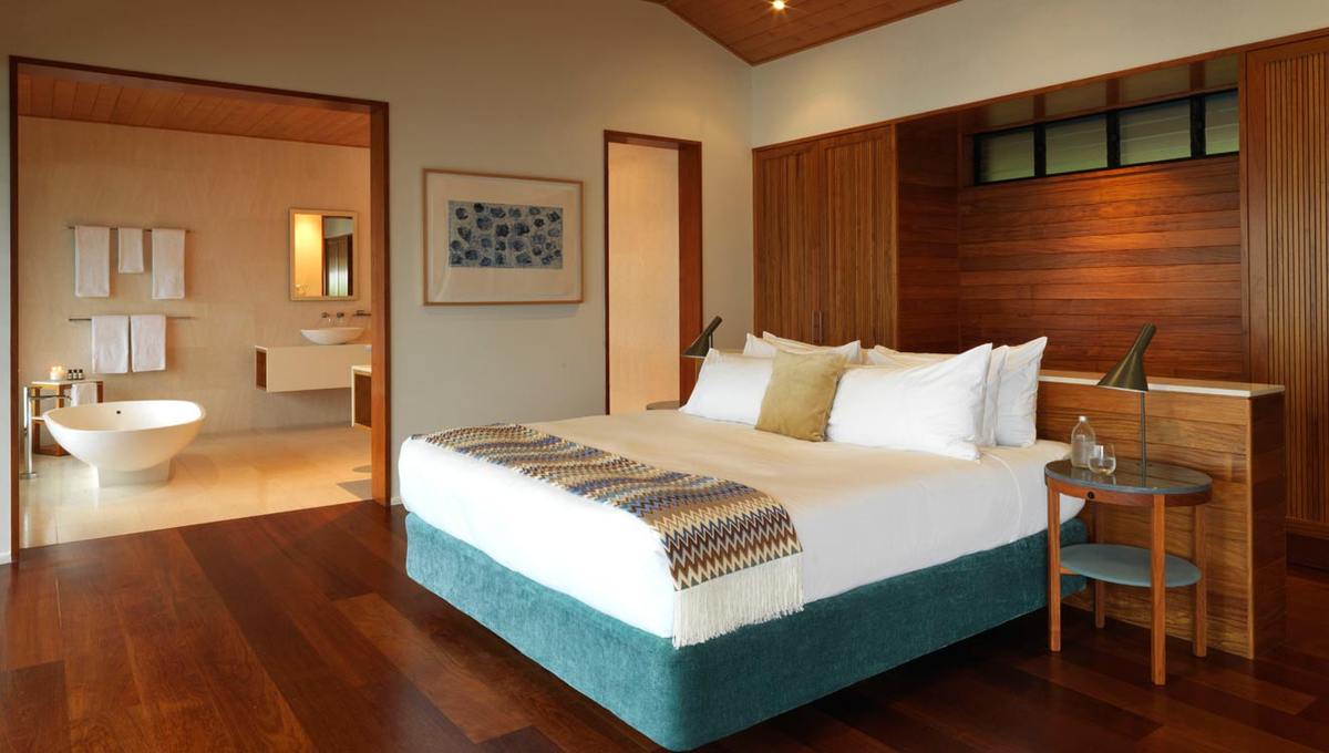 酒店由澳大利亚建筑师Chris Beckingham尽心打造,他的最终理想便是创造一个独具澳大利亚风格、刺激感官的豪华度假村。同时为了配合周围得天独厚的自然景观,也为了保护环境,所有的建筑材料全部为手工打造,选用原生桉树、南杉木,顶级的进口木材及石料营造了这片璀璨的空间。在60个精致阁房中享受超越时空的片刻,完美融入岛屿的稀世美景中。这是一个非常特别的地方,每个细节都经过精心考虑,让你宠爱自己的五官六觉,彻底放松。