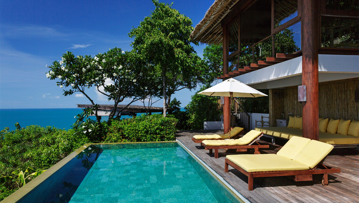 苏梅岛,一个遍布椰树风光的原生态岛屿。在这个拥有碧水白沙且充满了自然淳朴气息的小岛上,有一个被游客们誉为天堂之所在的地方,它就是苏梅岛六善酒店。这里平和、静谧,宛若被世间忘却,带给寻找宁静时光的你一份全然放逐身心的感动。它沿着崎岖的海角而建,距离苏梅岛机场约6公里,乘飞机从曼谷南下大约45分钟便可到达。整个别墅村由绿热带植物园林所包围,从度假村中可极目远望周围的海景和海中小岛风光。