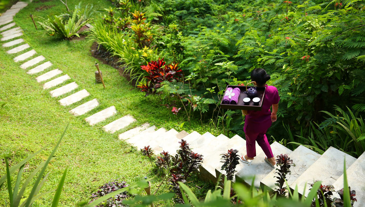位置:离巴厘岛乌布市区有40分钟的车程,这让那些想远离乌布喧嚣的旅人有了最好的遁世之地,进入酒店需要坐索道,几分钟就给你带到了幽静的山林