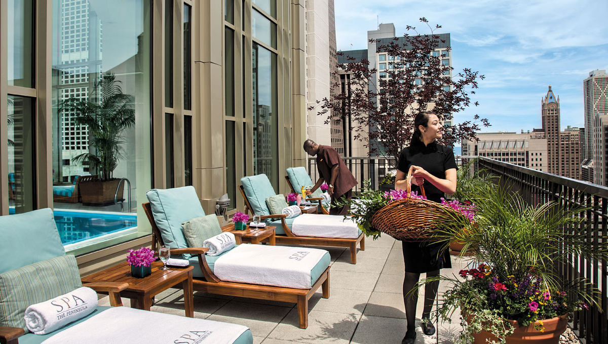 酒店非常注重现代人对健康与健身的关注,选取亚式水疗理疗服务,先进设施的健身房,一半奥林匹克竞赛长度的泳池,20英尺高的天花板,可以看到芝加哥的壮美城市景观。芝加哥半岛酒店被健康杂志投票评为“美国最健康的酒店”。酒店同时提供婚礼、商务会议等其他服务需求。