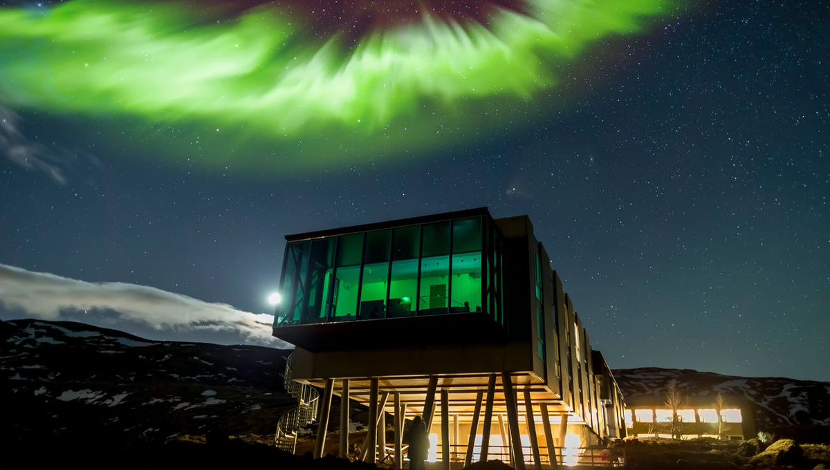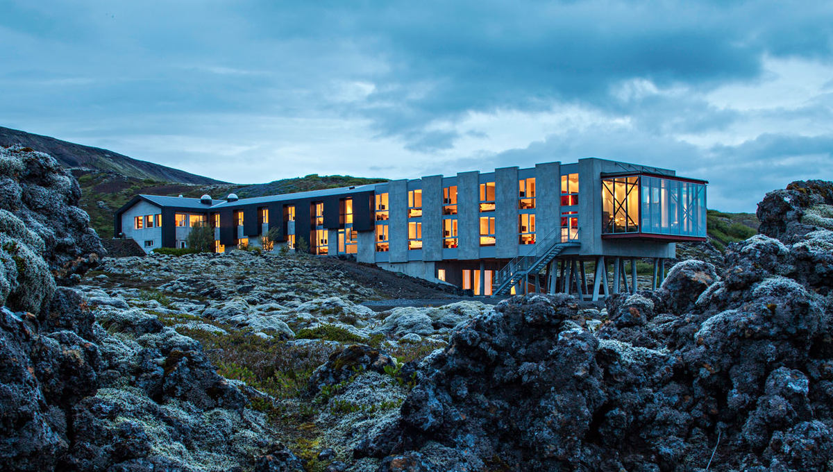 与此同时,酒店设计得舒适现代又别具风情,并充分利用天然的地热能源发电和供暖。住客在酒店享受舒适的同时,还可以感受自然奇观——熔岩流、漂移的大陆架、北极光、冰川、悬瀑和温泉。