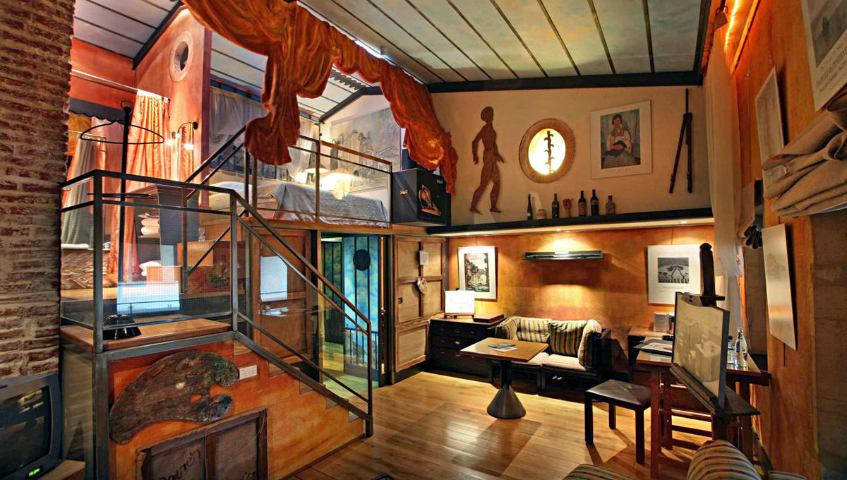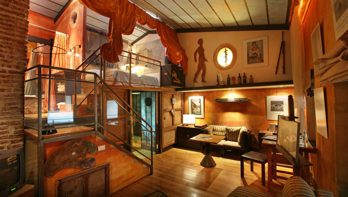 在庭院酒店的房间内,你看不到一般星级酒店里概念化、现代化的简单设计,你看到的是一间间仿佛是艺术家工作室的房间。房间的墙上装饰着艺术家的画作或一些有意思的工艺品,加之丝绒布料和木材的使用,使得整个空间富有戏剧性,却又随意、温馨。