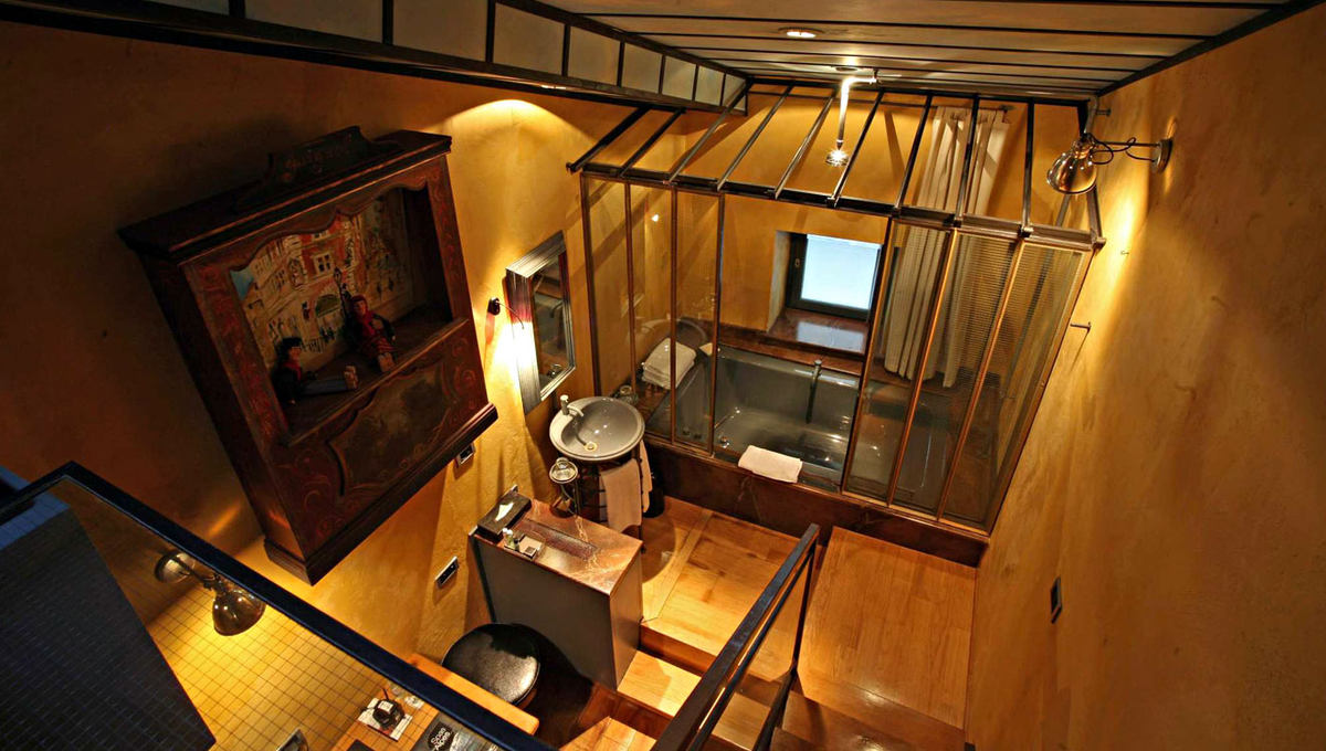 酒店由四座古建筑组成,中间是一个有着玻璃房顶的庭院,充足的自然光线穿过屋顶撒进室内,让这个庭院无比亮堂,并且让这里的每一处富有历史气息的细节都展现出来,散发着迷人魅力。