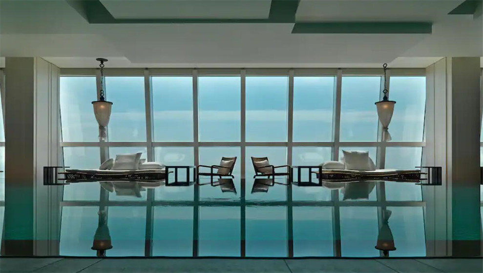 位于上海柏悦酒店85楼的「水境」水疗是一家豪华spa。这里不仅可以众览上海城的迷人景观,还拥有20米的游泳池和太极庭院,并提供多种放松身心、恢复活力的spa疗程。
