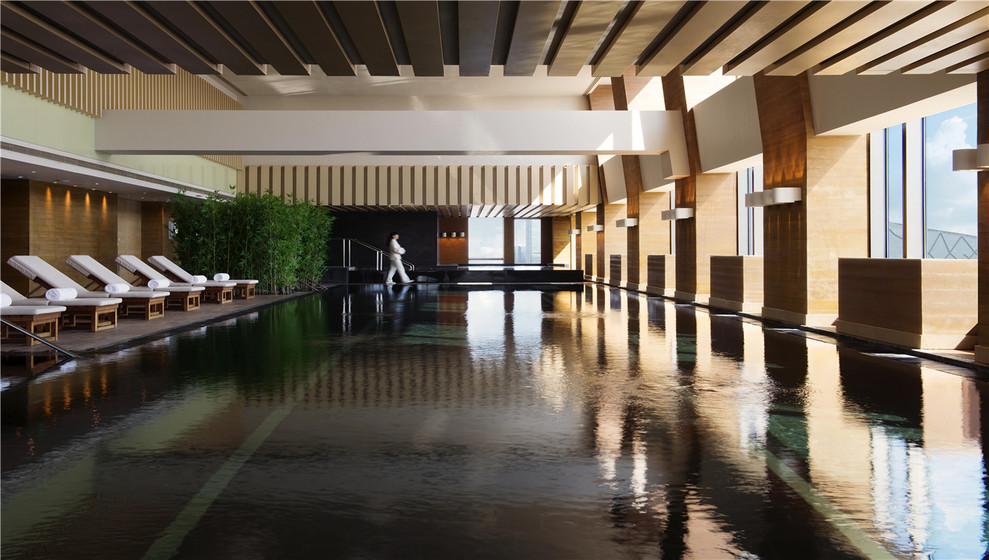 位于北京柏悦酒店59层的「天池水疗中心」不仅可以众览北京的迷人景观,还拥有25米的云端游泳池和设施完备的健身房。