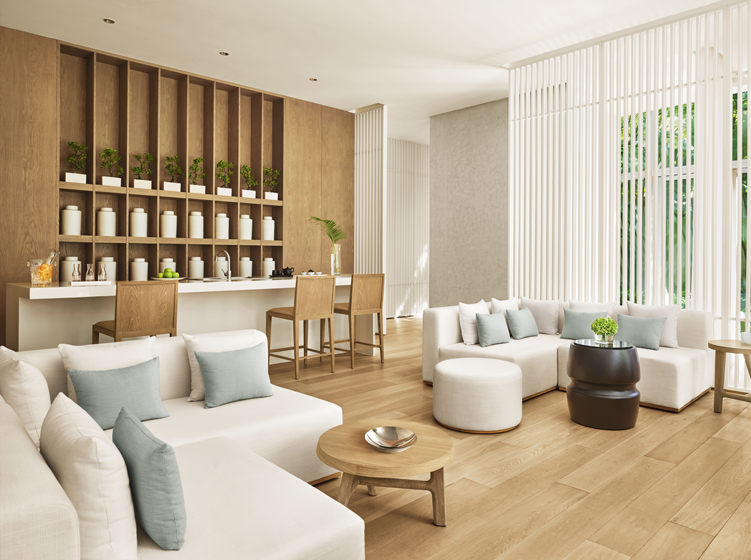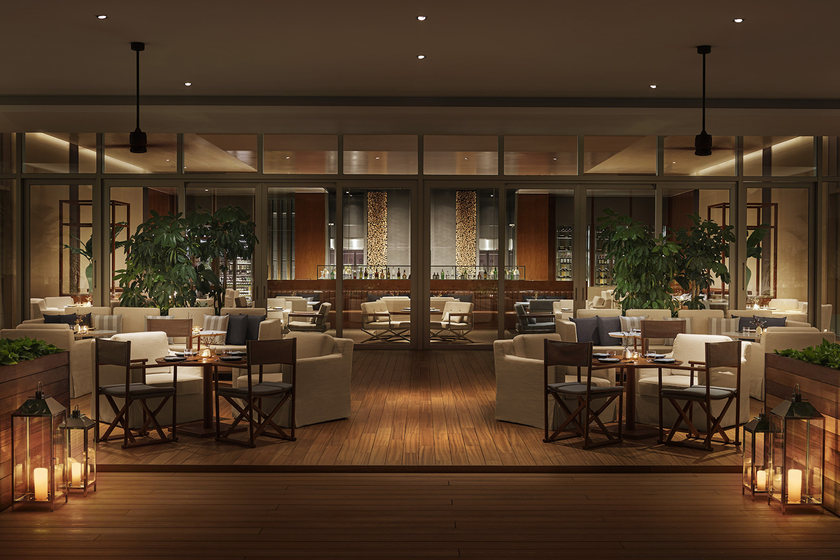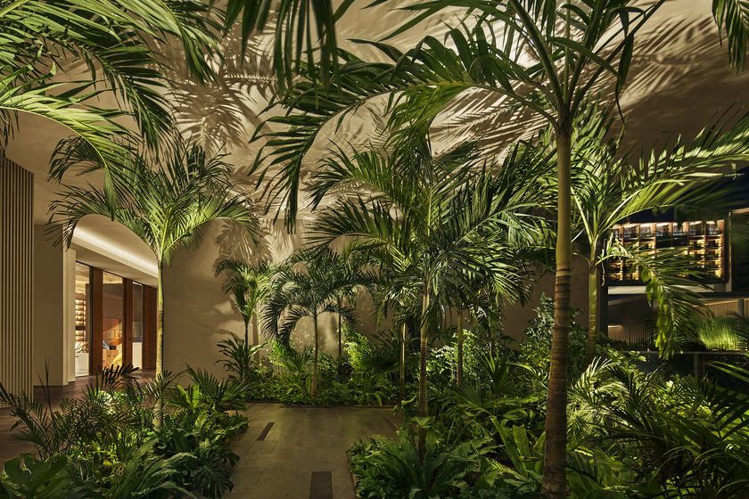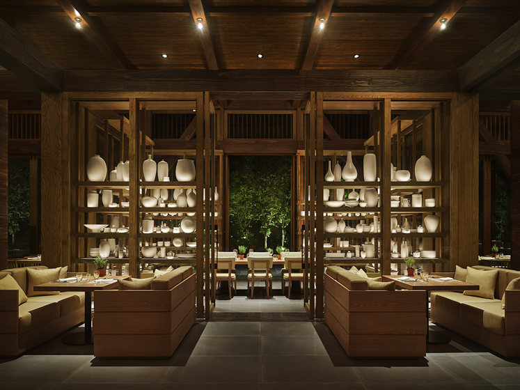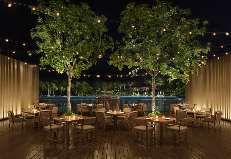 Market 晋餐厅:设计灵感来自三亚海上丝绸之路。化身历史悠远的中式货仓,实心柚木窗格、挑高房梁和实心木柱全部经过做旧处理。座椅由漂白橡木、米色皮革和天然灰色衬垫制作而成,装点上茂盛的热带棕榈树和蕨类绿植,一派自然休闲的味道。