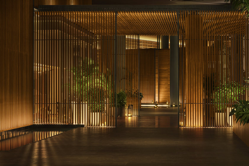 再说大堂,高达17米的全开放式挑高空间用竹子做设计,两旁则用多余的空间划出“悠然见南山”的江南模样。得益于开放式设计理念,从进门时,无垠海景便呈现在你眼前。更是三亚仅有的酒店内“私人海域”,将海水引入酒店内部的专属区域的设想实则惊为天人,虽然与大海并非无缝链接,但无疑刷新了传统海岛度假的理念