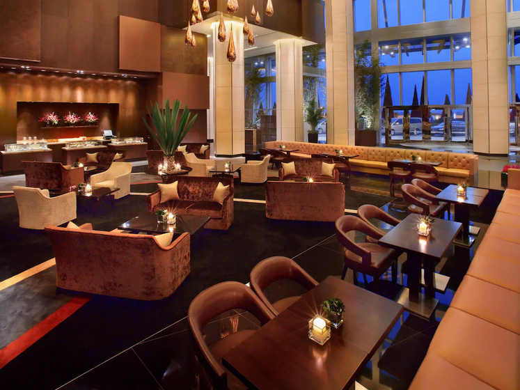 酒店设计时尚豪华,挑高大堂空间立体感强,充满现代与文化的质感。客房格局端庄大方,以浅棕色入调,氛围舒适惬意。宽景式落地玻璃让你尽览路凼与珠江西岸的迷人夜色,免费无线宽带使商务、休闲变得轻松。 -