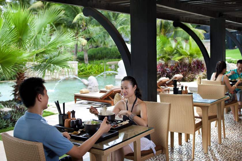 酒店设有各色餐厅和酒吧,均提供从海滨餐饮到精致粤菜的传奇式菜单以及令人赞叹的美景!Fresh 餐厅提供美味海鲜和海滨环境,倚洋中餐厅供应地道粤菜,Pavilion 餐厅全天候供应亚洲和西方美食,Mee & Mian 面之家提供令人垂涎的面条和池边环境,日落吧供应鸡尾酒并可欣赏迷人海景,MO Blues 酒廊提供雪茄和纯麦威士忌,Wave 池畔餐厅提供池畔茶点,茶馆提供 100 多种不同品种的茗茶,Cliff 酒廊为套房和别墅客人提供早餐、下午茶和小食。