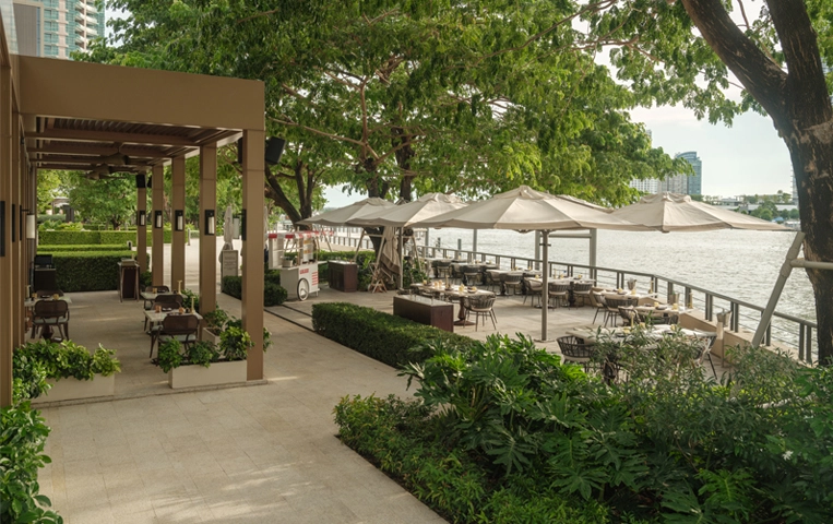 闲坐于水木清华的湄南河畔,品自泰国原始家族烹饪,沉醉于米其林三星大厨的精美菜肴,亦余味无穷的法式糕点与缤纷可口的手工鸡尾酒,有口皆碑,细品其香,回味无穷。COTE BY MAURO COLAGRECO餐厅拥有荣获米其林一星嘉奖的里维拉地中海风情用餐体验。宾客坐在光线充足,内饰高雅的餐厅里,可以将波光粼粼的湄南河尽收眼底。餐厅的丰富多彩的菜肴精于心而简于形,由米其林三星主厨Mauro Colagreco情亲打造。Phra Nakorn提供地道泰国料理。餐厅坐拥湄南河 岸旖旎的景致,通透的落地窗让自然光肆意洒入室内 ,让现代风情的餐厅更为轻松惬意。餐厅选用“厨师 花园”最新鲜的食材,搭配本土经典食谱为客人打造 精致、可口且创意十足的泰式美饕。