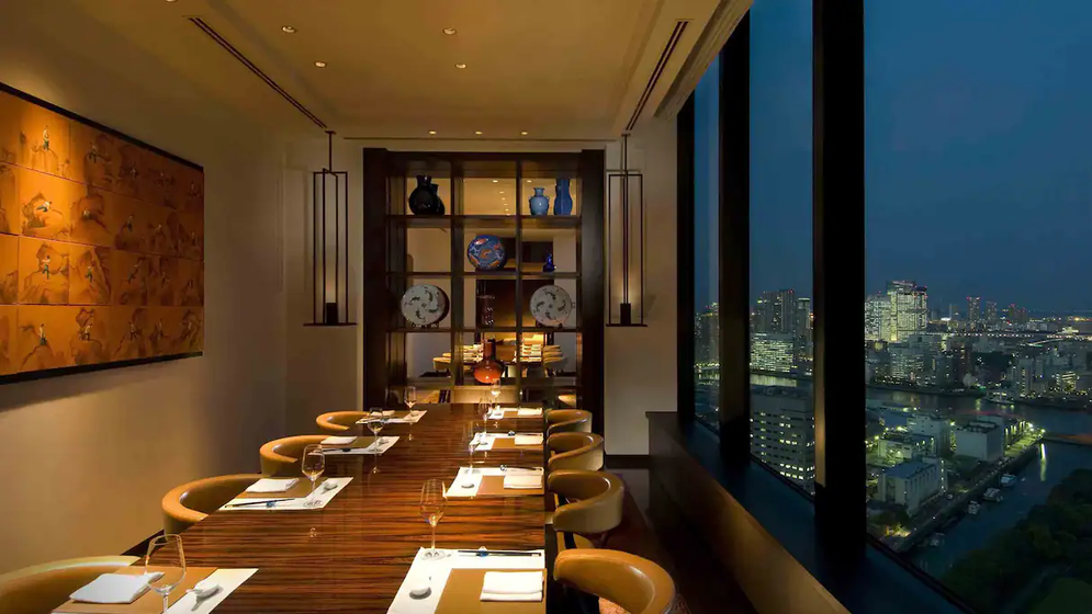 尽情探索 China Blue 的宁静祥和。享用屡获殊荣的可口美食,同时透过落地窗观赏美轮美奂的天际线景观。纵享创意打造的现代中式菜肴。在现代化布置氛围中,体验口味独特的亚洲美食。您可从 8 米步入式酒窖中选择一款完美佐酒,打造个性化餐饮体验。三家私人餐厅您可任选其一,享受令人难忘的餐饮体验,远眺滨离宫恩赐庭园和东京湾美景。