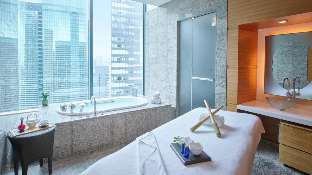 在 29 楼的 Mizuki 水疗和健身中心享受舒适放松,让我们的专业理疗师呵护您的一切需求。忙碌的一天之余通过一次舒缓的按摩放松身心。通过创新面部护理滋养皮肤,或沉醉于祥和的氛围和壮丽全景中尽情享受一次身体理疗。 在出席重要约会或外出之前畅享一次手部或足部美甲。每一项酒店水疗中心服务均可通过背部和肩部按摩、快速面部护理、眼部护理提升效果。 Mizuki 水疗和健身中心设有一个室内泳池和健身中心,以及干蒸和蒸气桑拿房、按摩浴缸、采用日本柏树做成的扁柏浴缸以及一把休闲椅,供您享受所选理疗服务前放松身心。