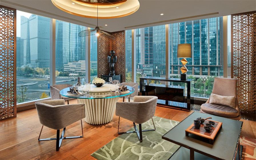 336 间时尚雅致、宽敞舒适的客房和套房,将现代风格与成都本地文化元素相结合,可俯瞰成都天际线的绝美景致。