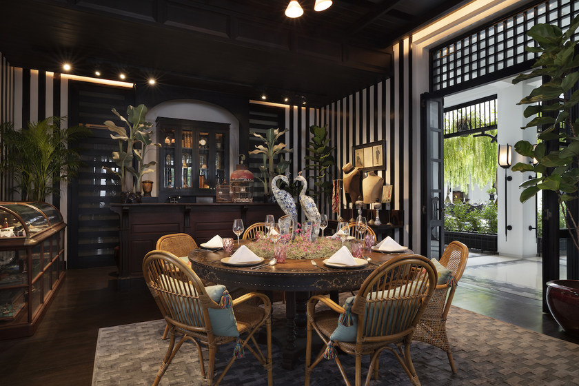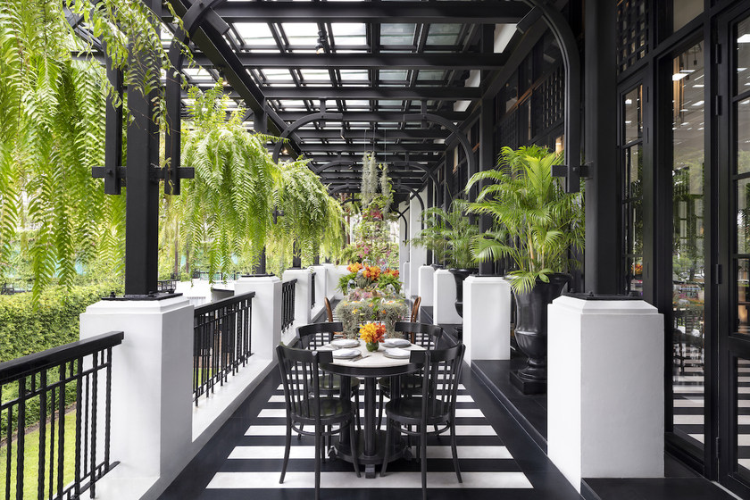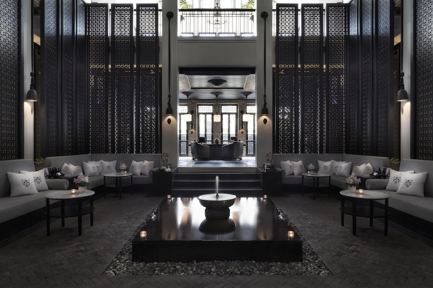 酒店由顶级造景大师Bill Bensley设计,以泰王拉玛五世时期宏伟的建筑风格为蓝本,融和了泰式传统、殖民和中式风情的时尚设计,整个酒店呈现出一种古朴而又不失现代感的多重观感,透着时代与地域的交织感。