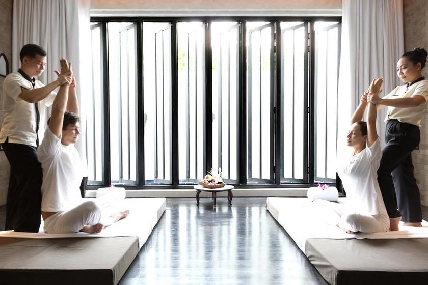 三进院的设计架构将小花园与博物馆置于前庭;欧式旧车站钢架调高的空间设计用于中庭,黑白色系加上自然采光;别墅、餐厅、泳池和私人码头等,位于后庭的私人空间完美地诠释着酒店的私密性。酒店还配备了泰拳擂台、完备的水疗中心、酒吧、图书馆、烹饪学校甚至影院。