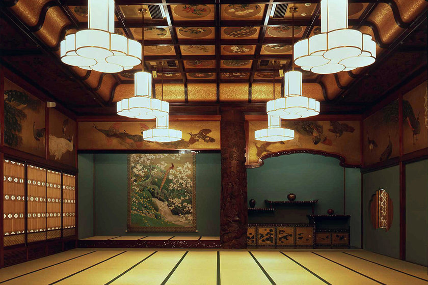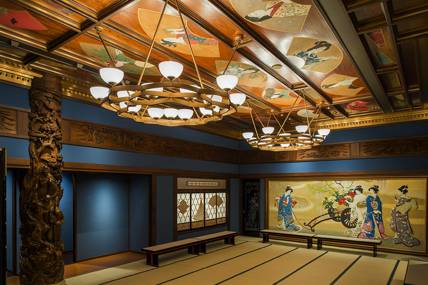创业者细川力蔵,梦想在提供美食之外,还能让客人们在视觉上得到享受,于是便邀请当时的艺术家们来到园内创作壁画、天花板画,和令人惊叹的木制雕刻等艺术工艺品,作为园内的建筑装饰。神奇的艺术巨匠们带领每一位走进园内的客人穿梭在昭和时代之中,让您仿佛身临其境。绚烂豪华的东洋艺术殿堂就这样诞生了。