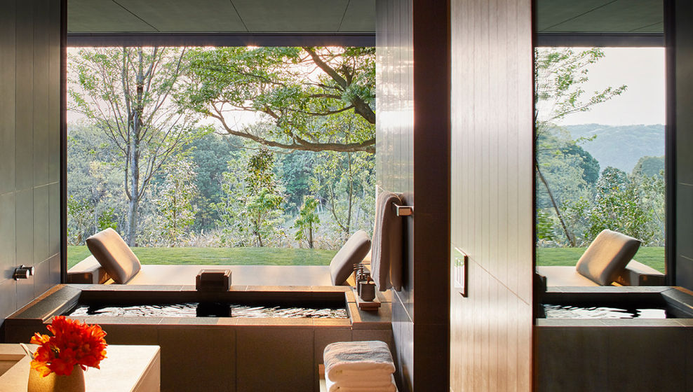 此外,这里还配备有顶级健身中心,Watsu套房和大型玻璃幕墙瑜伽馆,户外露台俯瞰着宁谧的花园,花园中心栽种着一棵枝繁叶茂的楠木。度假村另设四个理疗套房,让需要更深层次放松的客人体验结合了富矿温泉的理疗,这种泉水以其强大的治愈特点而著称,加上以身心合一原则为基础的传统汉方草本疗法,让客人的身心得到全然的休憩与新生。