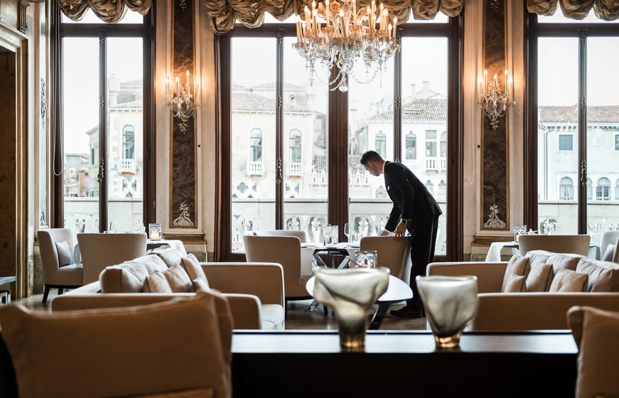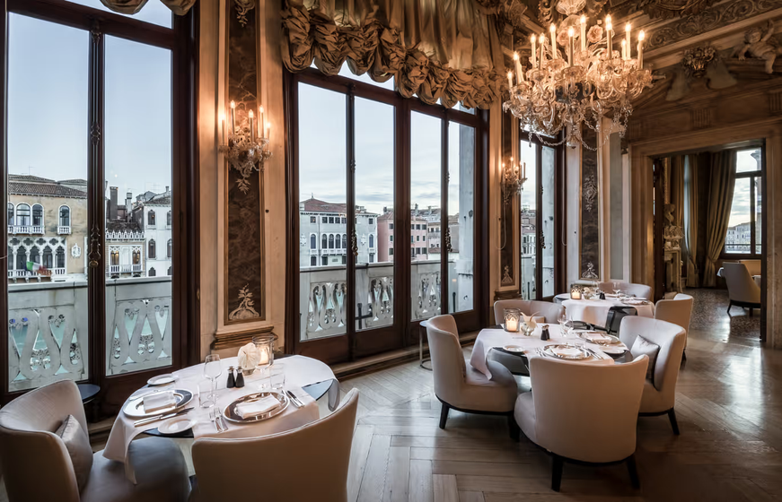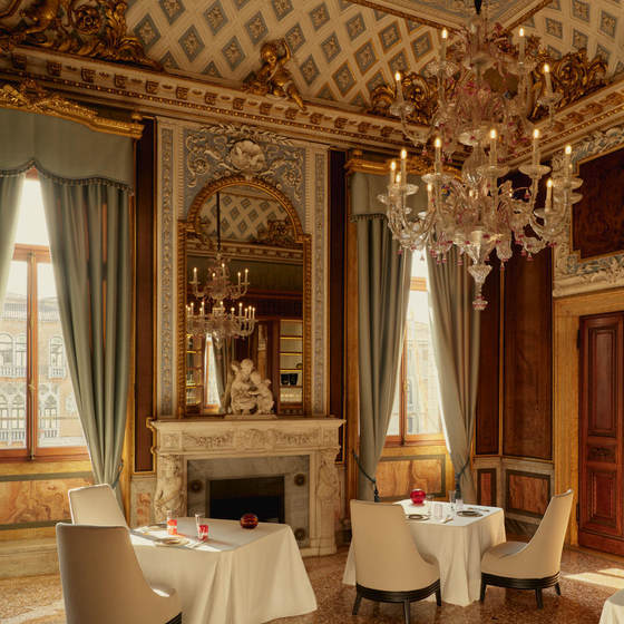 水城威尼斯拥有着辉煌的过去,是文艺复兴的精华,沉殿着历史的及浪漫。上帝将眼泪流在了这里,却让它更加晶莹与柔情。酒店坐落于水都大运河之上,为一座十六世纪的宫殿,拥有博物馆收藏级艺术珍宝,包括提埃坡罗湿壁画、镀金天花板以及历经数百年历史的皮革壁布,与水城威尼斯共享华丽与浪漫的艺术。酒店完美地展现了新文艺复兴的壮观宏伟与摩登的美学的结合. 令人彷如置身于一个十六世纪宫殿内的一座漂亮的博物馆之中。